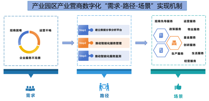 產業園區是區域經濟發展中的關鍵要素,入園企業數量多、人員密集、業態廣泛。搭建數字化產業營商服務平臺,可為入園企業營造更優營商環境,具有社會效益大、受惠范圍廣的特點。本文將以產業園區為研究案例,探討以“需求-路徑-場景”機制推動產業營商數字化的可行性,并提出園區產業營商數字化的相關建議。