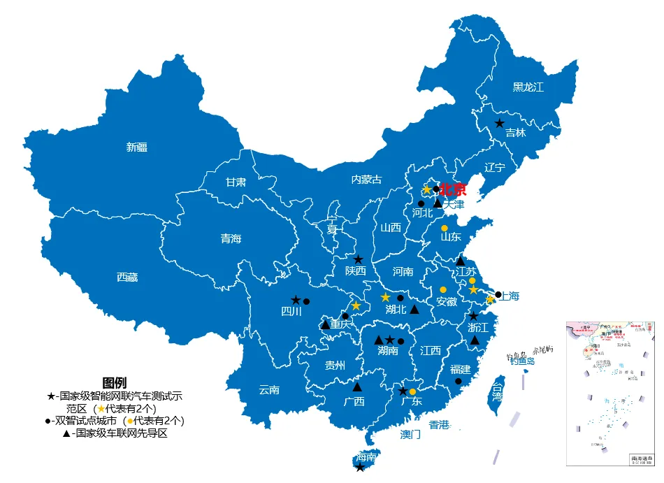 2016年11月,工業(yè)和信息化部開始推動構建“基于寬帶移動互聯(lián)網的智能汽車與智慧交通應用示范”,北京、上海、浙江、重慶、武漢、吉林獲批建設首批六個示范區(qū)。截至2024年5月,全國已有17個國家級智能網聯(lián)測試示范區(qū)、16個“雙智”試點城市,7個車聯(lián)網先導區(qū);全國共開放自動駕駛示范道路3.2萬多公里,測試里程超1.2億公里。