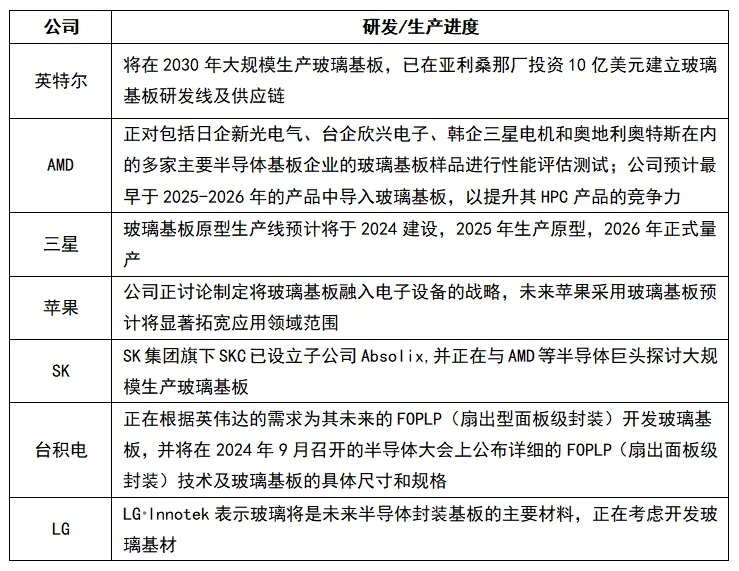 三、國內外企業玻璃基板及玻璃通孔工藝布局情況