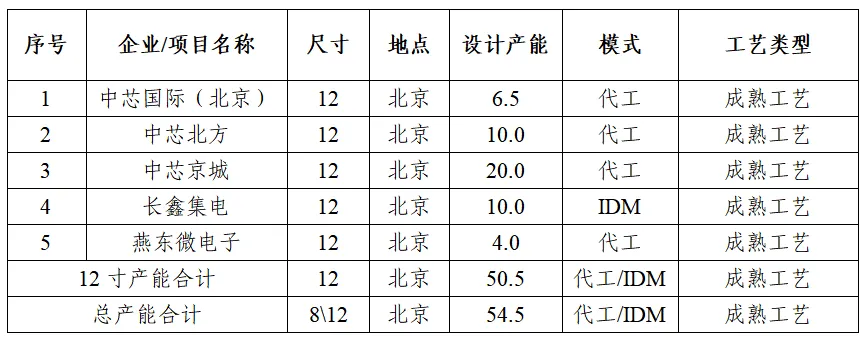表格信息來源:北國咨根據(jù)集微咨詢、北京半導(dǎo)體行業(yè)協(xié)會公開信息整理