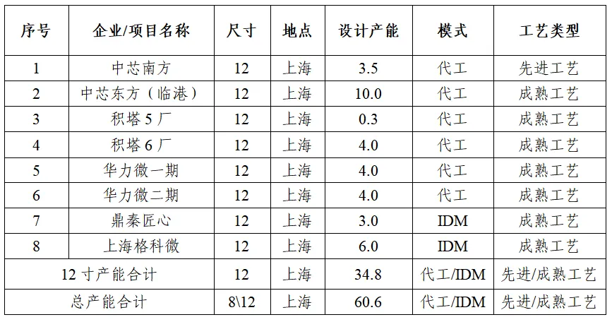 表7 上海集成電路12寸產(chǎn)能和總產(chǎn)能情況(萬片)
