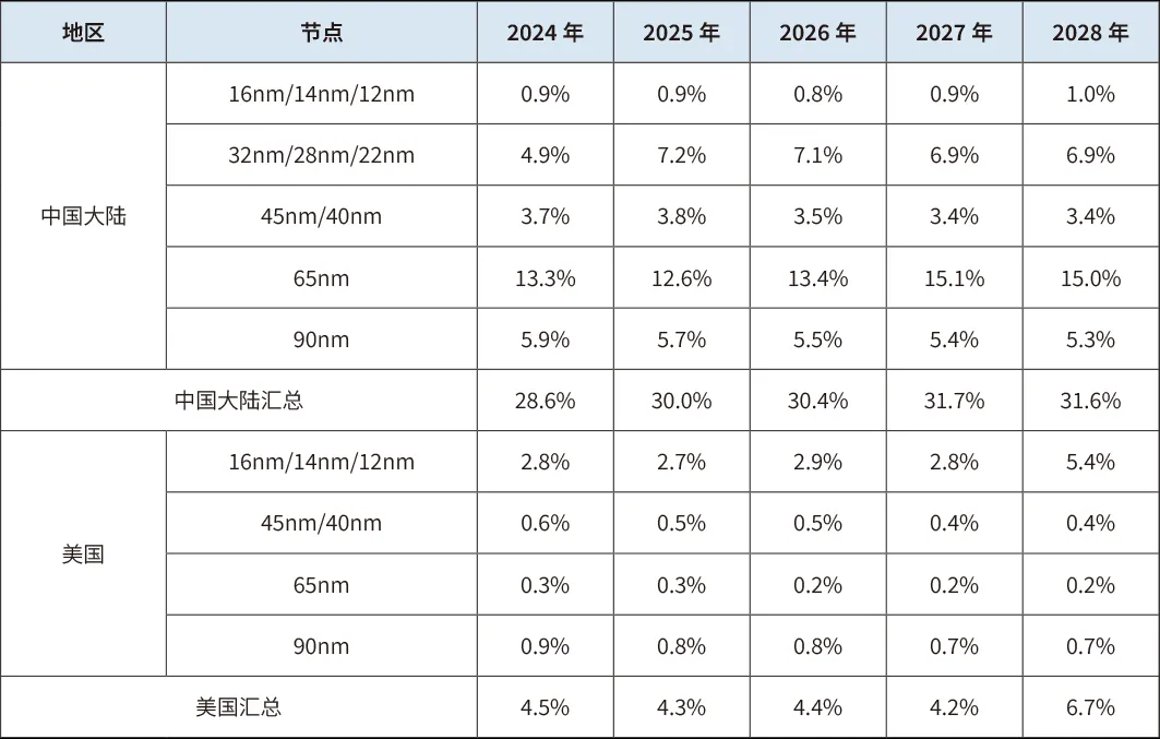 表4 格芯與聯電不合并情況下各地區成熟工藝產能占比