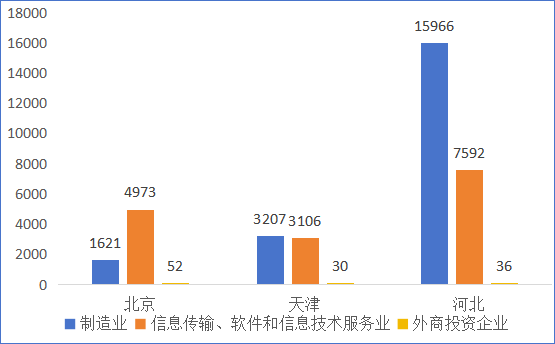 根據(jù)天眼查數(shù)據(jù),一季度,京津冀三地制造業(yè)新設(shè)企業(yè)20794家,信息傳輸、軟件和信息技術(shù)服務(wù)業(yè)新設(shè)企業(yè)15671家,總計(jì)36465家,較上年同期增長(zhǎng)90.2%。新設(shè)制造業(yè)企業(yè)中,醫(yī)藥制造業(yè)325家,汽車(chē)制造業(yè)645家,計(jì)算機(jī)、通信和其他電子設(shè)備制造業(yè)870家,專(zhuān)用設(shè)備等裝備制造業(yè)4003家。在招引外商投資企業(yè)方面,京津冀三地新設(shè)立外商投資企業(yè)669家,其中制造業(yè)53家,信息傳輸、軟件和信息技術(shù)服務(wù)業(yè)65家,分別較上年同期增長(zhǎng)60.6%和58.5%。