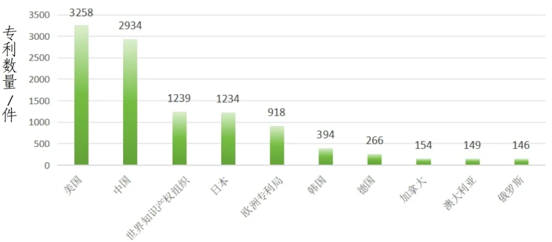 圖2  eVTOL領(lǐng)域PCT申請量排名前十的國家(截止到2024年)