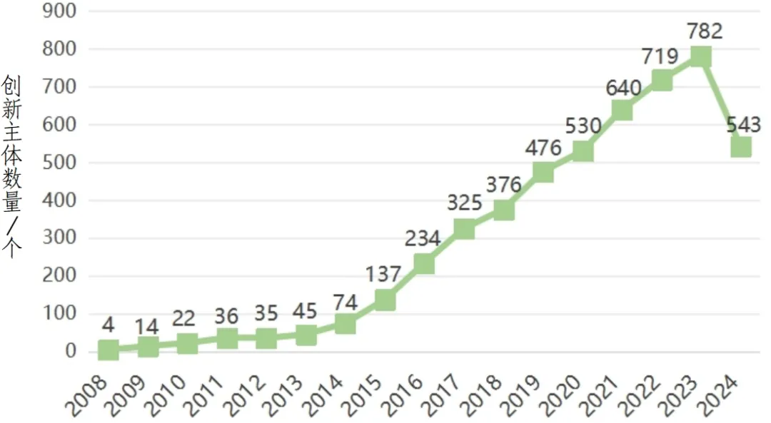 圖3  全球eVTOL領(lǐng)域創(chuàng)新主體數(shù)量變化趨勢