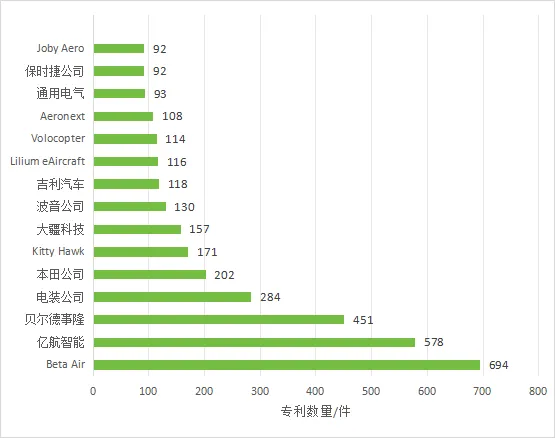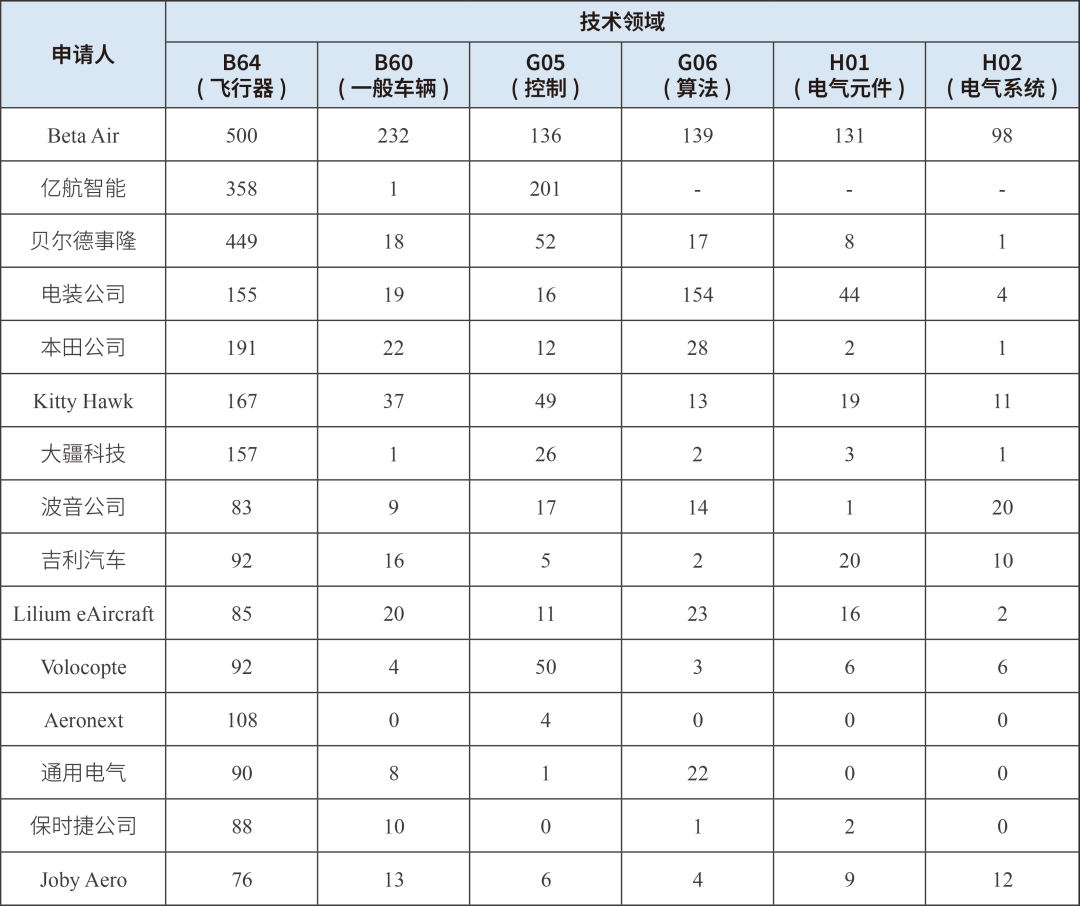 表1 全球重點申請人eVTOL領(lǐng)域?qū)@夹g(shù)布局(單位:件)