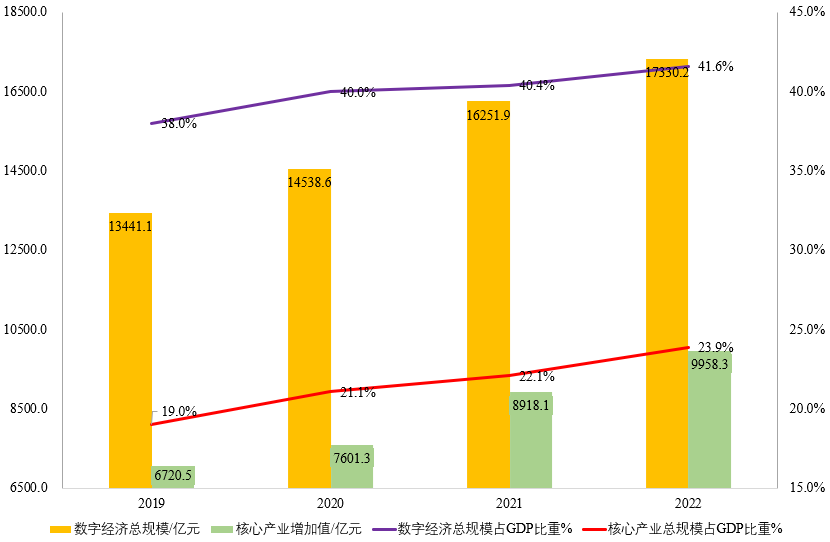 圖1   2019-2022年北京市數字經濟增加值及占GDP比重