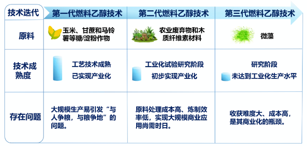 圖1 三代生物燃料乙醇技術(shù)對(duì)比