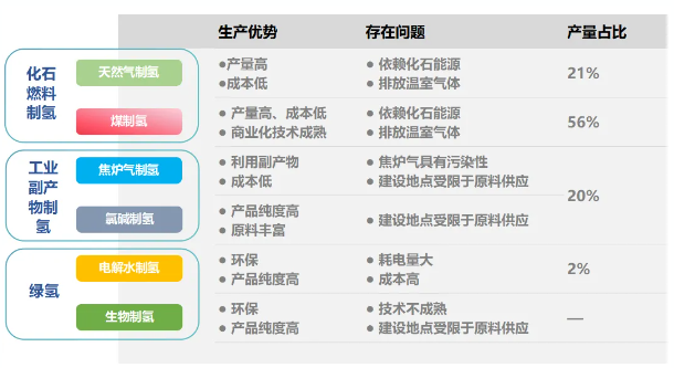 圖2 幾種制氫方式對(duì)比及占比