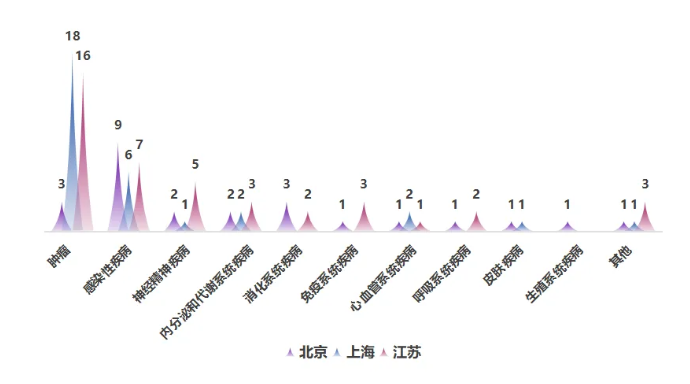 二、治療領域:北京“多元布局”,蘇滬“相對集中”