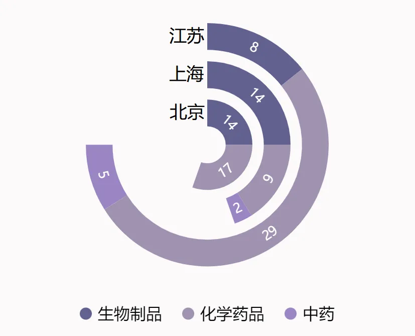 三、藥品類型:上海“兩輪驅動”,京蘇“各有千秋”