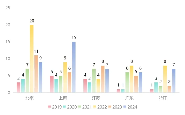 圖4  2019-2024年京滬蘇廣浙創新醫療器械上市情況