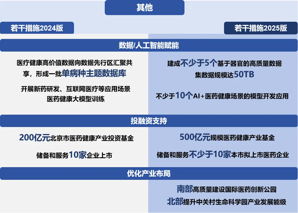 4月7日,北京市醫(yī)保局、市衛(wèi)生健康委等九部門聯(lián)合發(fā)布《北京市支持創(chuàng)新醫(yī)藥高質(zhì)量發(fā)展若干措施(2025年)》(簡稱《若干措施2025版》),從創(chuàng)新研發(fā)、臨床試驗、審評審批、生產(chǎn)制造、流通貿(mào)易、臨床應(yīng)用等全鏈條提出新一輪32條措施,持續(xù)完善“一條鏈”服務(wù),進(jìn)一步推動北京市“萬億”醫(yī)藥健康產(chǎn)業(yè)再上新臺階。這是北京市醫(yī)保局、市衛(wèi)生健康委等九部門連續(xù)第二年共同出臺支持創(chuàng)新醫(yī)藥高質(zhì)量發(fā)展的專項政策,2024年4月17日發(fā)布的《北京市支持創(chuàng)新醫(yī)藥高質(zhì)量發(fā)展若干措施(2024年)》(簡稱《若干措施》)實施成效顯著。本文對兩版政策進(jìn)行對比,結(jié)合北京支持創(chuàng)新醫(yī)藥發(fā)展的實際成效,梳理《若干措施2025版》的政策亮點(diǎn)。