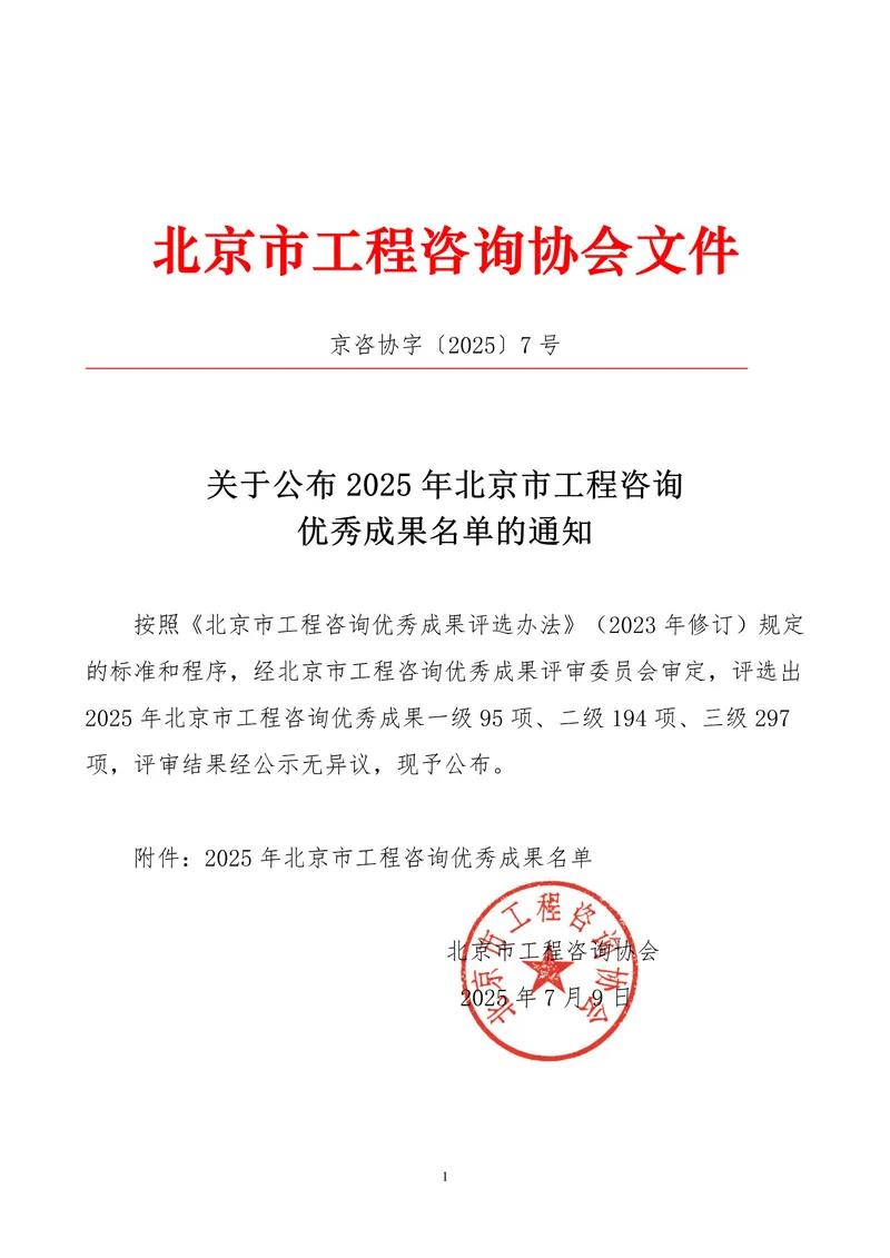 2025年北京市工程咨詢優(yōu)秀成果名單(北國咨)